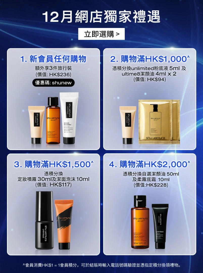 購物滿 HK$2,000,憑積分換 自選潔顏油 50ml及柔霧底霜 10ml