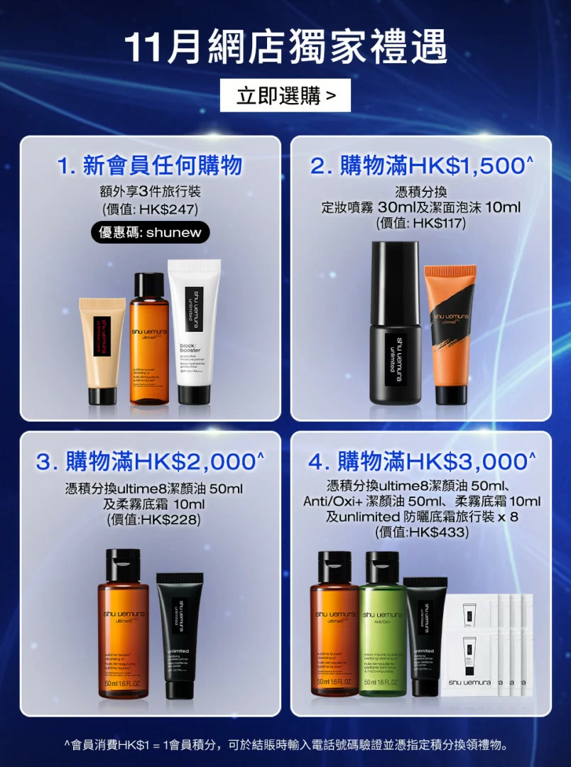 新會員任何購物額外享3件旅行裝(價值:HK$247)。